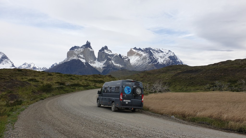 Am Nachmittag verlassen wir zwar den Nationalpark, behalten die beeindruckenden Berge aber noch im Blick. Das Nachtlager bildet ein Parkplatz an der Laguna Amarga, eine salzige Lagune, die so ganz anders als die Gletscherseen der letzten Tage ist.