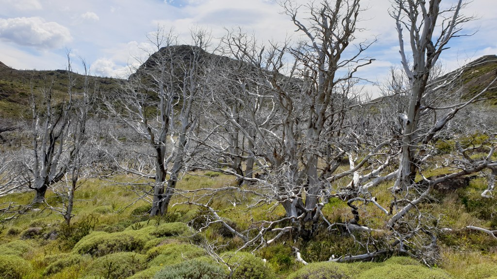 Am dritten Tag war nochmals eine Wanderung angesagt: Wir bleiben aber eher unten und laufen zum Lago Nordenskjöld welcher direkt unter den Cuernos del Paine liegt. An diesem Tage schaffe ich es mal früh aus den Federn und besteige allein den benachbarten Hügel. Die Belohnung sind wolkenfreie Berge und eine unglaublich ruhige Stimmung.