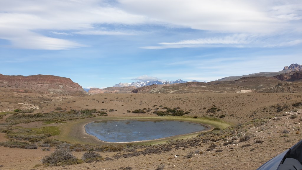 Die Landschaft verändert sich schnell und wird gefühlt zu Kanada oder Alaska. Die Strasse bleibt weitgehend übel. Wir holpern über die Piste und sind begeistert von der traumhaften Gegend die einen enormen Kontrast zum Morgen bildet. Das Valle Chacabuco ist ein privat finanziertes Naturschutzgebiet. Es gibt auch einige Campingplätze, die wir aber links und rechts liegen lassen müssen. Ebenso ganze Herden von Guanakos, Vogelschwärme und weitgehend unberührte Natur. Eine Region, die sicher einige Tage Zeit bräuchte…