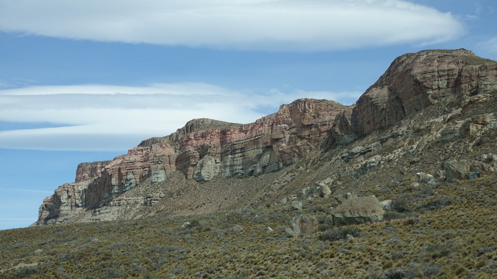 07.12.2019: Die Nacht war ruhig bis auf den stetig an Oski zerrenden Wind. Wir sind früh wach, denn die Etappe bis zur Carretera Austral wird sicher anspruchvoll. Der Landcruiser unser Mitfahrer fährt vor uns los. Ich drehe Oski und gerate dabei mit einem Vorderrad in den weichen Kieswulst neben der Strasse. Ein Rad hat keinen Grip, buddelt sich in Sekundenschnelle ein, das andere auf der festen Oberfläche bekommt keine Kraft ab. Ich wünsche mir ein Sperrdifferenzial und muss mit der Klappschaufel Vorlieb nehmen. Etwas Platz für den Auffahrkeil geschaufelt und die Situation ist gemeistert. Dauert trotzdem einige Minuten. Team Toyota hat aber geduldig gewartet.