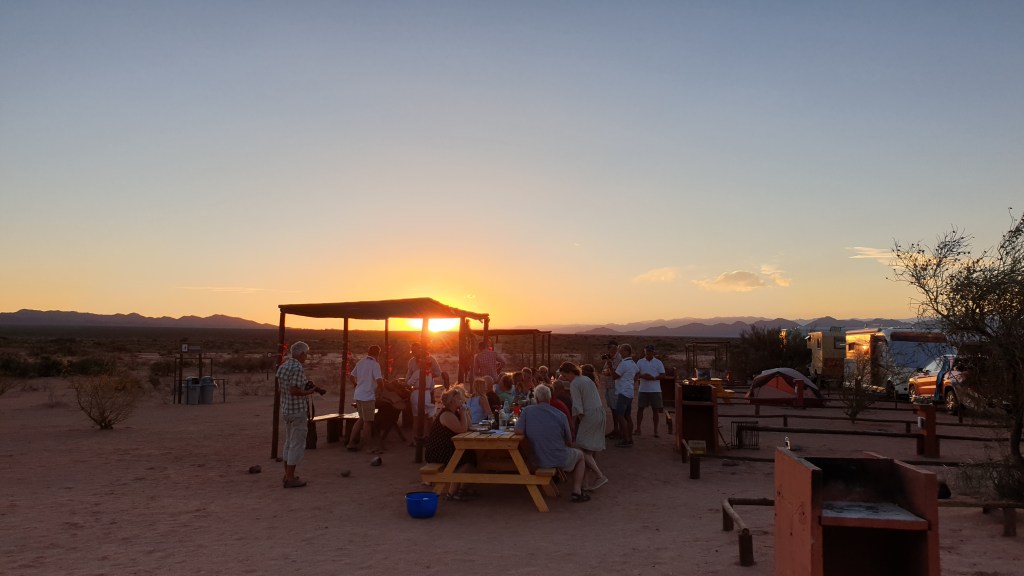 Nach diesen Erlebnissen steuern wir auf den heiligen Abend zu. Machen uns frisch, bauen die Tafel und das Buffet auf. Es wird musiziert, geschauspielert, gegessen, getrunken und es gibt die Bescherung an diesem für immer unvergesslichen Heiligabend in der Wüste.