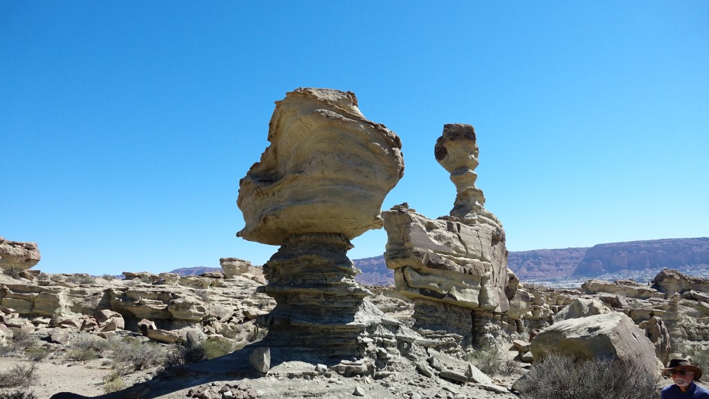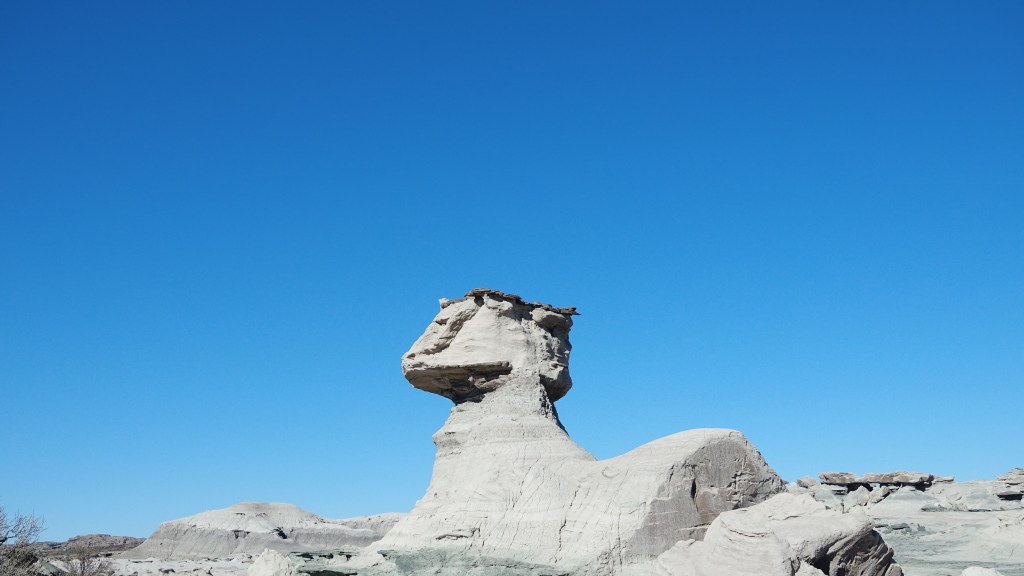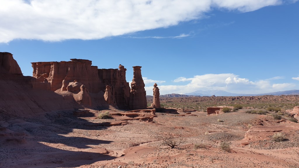 Die Gegend des Valle de la Luna gehört zu den trockensten Argentiniens. Im Westen steigen die Anden weit auf und schieben jeglicher Feuchtigkeit aus dem hier auch schon sehr trockenen zentralen Chile den Riegel. Und aus Nordosten kommt aus dem Amazonasbecken kaum eine Wolke bis hierher. Auch die Temperaturen sprechen eine deutliche Sprache und erreichen schliesslich am Heiligabend bis zu 42 Grad im Schatten, zusammen mit dem durchaus vorhandenen Wind ein Gefühl wie vor einem Heizlüfter.