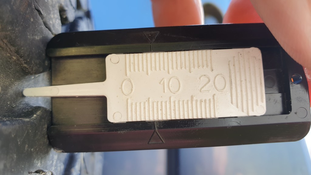 Seither sind die hinteren Räder über 40000 Kilometer gelaufen, die Vorderräder wurden nach ca. 33000 km gewechselt. Das Restprofil aussen 5 mm, innen 3 mm, was auf zu hohen Luftdruck hinweist. Die Reifen haben einiges hinter sich. Tausende Kilometer starker Seitenwind und tiefe Spurrillen in Argentinien, steile Schotterstrecken, Waschbrettpisten, unzählige Kehrschleifen und enge Kurven in den Anden und rauher Strassenbelag auf weiten Strecken. Es gab keine Panne und den Luftdruck mussten wir kaum auffüllen.