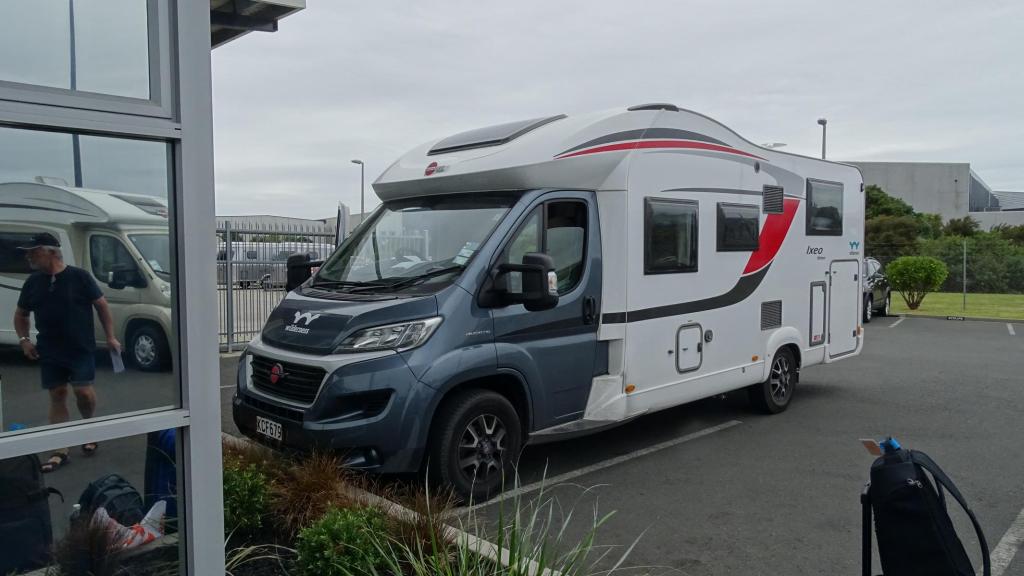 Am nächsten Abend flogen wir dann nach Christchurch auf der Südinsel. Nach einem Akklimatisationstag – wegen 12 Stunden Zeitverschiebung – konnten wir dann am vierten Reisetag ins Mobil einziehen. Das Fahrzeug war ein Teilintegrierter von Bürstner auf Fiat-Basis – bis auf die Rechtslenkung also nichts ungewöhnliches. Ungewöhnlich für neusseeländische Verhältnisse war der nicht spiegelverkehrte Innenausbau – mit der Folge, dass man durch die Aufbautür zur Strasse hin aussteigen musste und an der Tür durch einen Warnhinweis daran erinnert wurde.