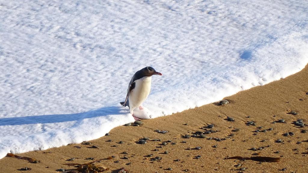 Gelbaugenpinguin in Oamara – Oamara ist eine ganz nette Stadt mit interessanter Architektur, die durchaus ein, zwei Stunden Erkundung lohnt. Ob die drei Stunden Warterei auf die seltenen Pingus lohnen? Ich meine schon…zumal die auf der faulen Haut liegenden Seelöwen auch ihren Teil zur Show beisteuerten.